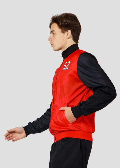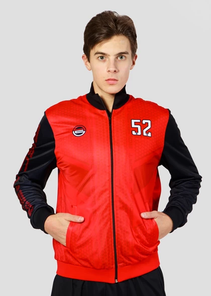 EscaperОписание: Олимпийка с высокой стойкой. Карманы прорезные. Рукав реглан. Манжеты и низ изделия из эластичной рибаны. Полная сублимационная печать. Дизайн и сублимационные нанесения уже включены в стоимость.